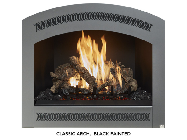 The 864 Collection is comprised of five large sized models featuring 864 square inches of glass. The size and heating capacities of these fireplaces are ideal for providing warmth to living rooms and other large spaces in the home. This collection includes four models that have brand new features, such as Ember-Glo ?, adjustable overhead Accent Lights, your choice of 10-piece Birch or Classic Oak Log Sets, and the CoolSmart TV Wall – option.