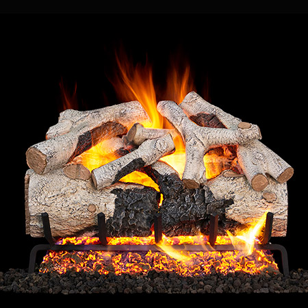 With enticing dancing flames to see, you can also feel the warmth of the new RH Peterson Real Fyre G52 Radiant Fyre Gas Log systems. Molded with an exclusive fiber enhanced refractory ceramic mixture, these handcrafted logs showcase the crisp Charred Burnt Aspen bark detail and glow and radiate like real burning wood logs.