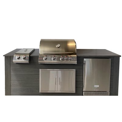 This Pro-Fit 8-foot outdoor kitchen island is a great option for homeowners who want a beautiful and functional outdoor kitchen without the hassle of a lengthy installation. Featuring a sleek and modern design, it’s easy on the eyes and built to last. The lightweight yet durable aluminum frame is finished with our low-maintenance Signature Decking, making it a breeze to keep clean. Plus, the beautiful porcelain countertop provides the perfect prep and serving area.